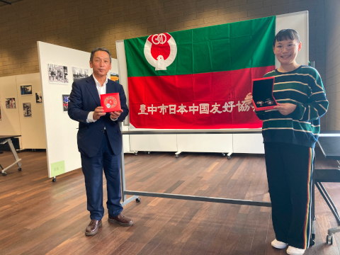 大阪大学中国留学生学友会 会長 沈燕妮 様(写真右)と 豊中日中友好協会 会長 天目基博(写真左)